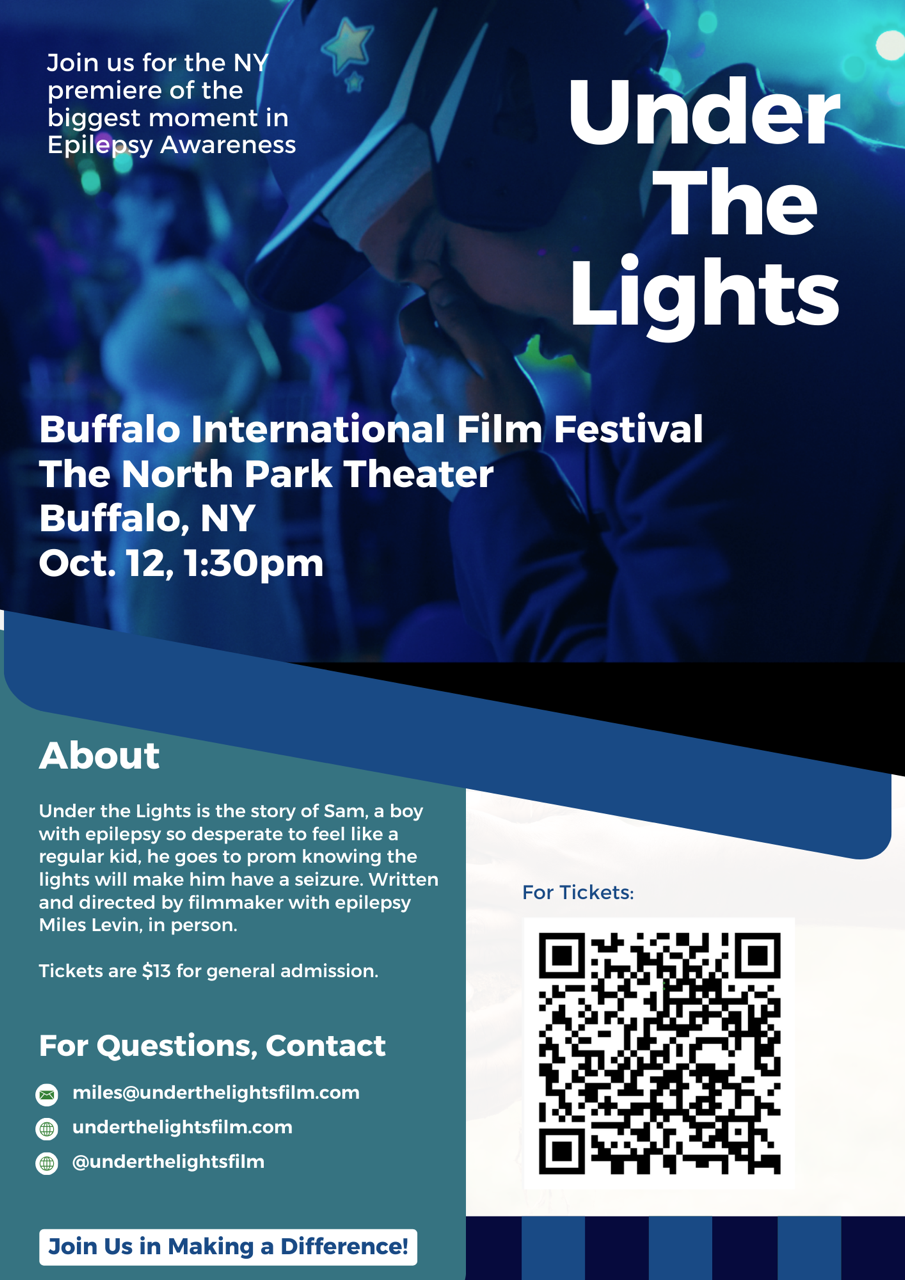 Join EPI for a ground-breaking event in epilepsy awareness – the premier of epilepsy’s first feature-length film Under the Lights at the Buffalo International Film Festival. We are providing bus transportation to and from this super exciting event! Registration is FREE and includes a seat on the bus and a ticket to the film.